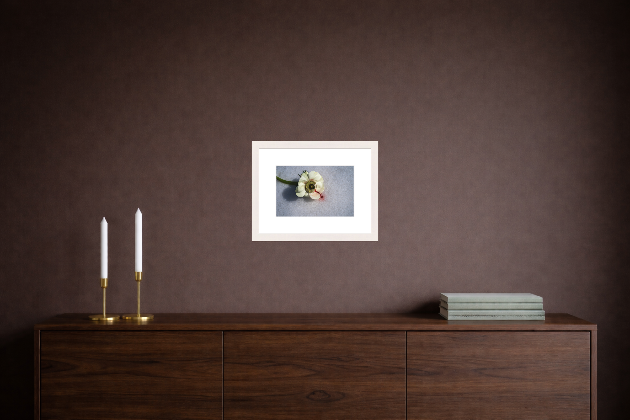 - Fine Art Print behind Museum Glass with a 5 cm Off-White Mat and a White Maple Frame (2 cm): 22.5 x 15 cm (outer size: 36.2 x 28.7cm)