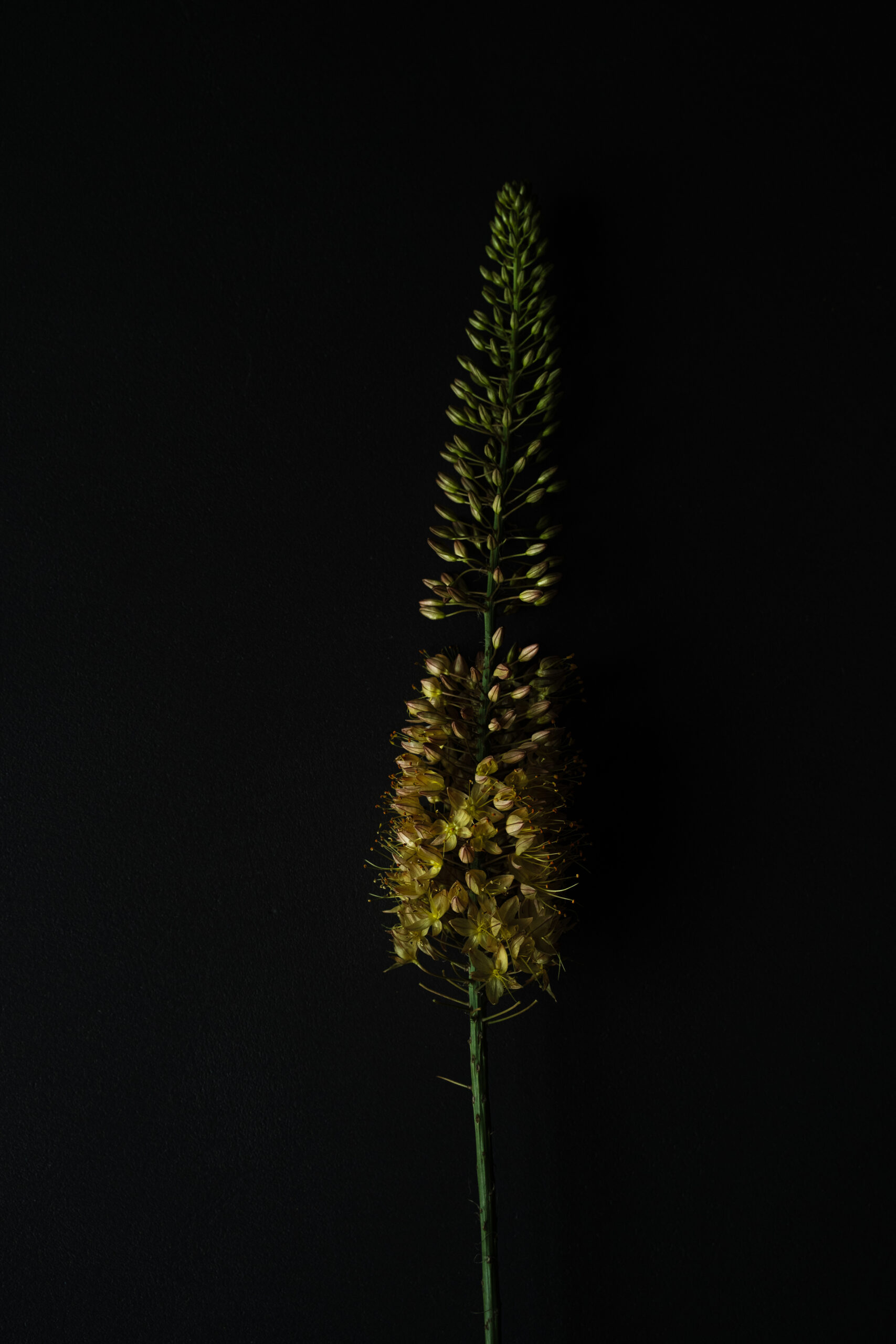 From a bouquet of yellow and blue delphiniums, I selected this one to photograph. I am fascinated by the many small blossoms arranged along its single, elongated stem. Each one is modest on its own, yet together they create something precise – almost architectural in its structure.